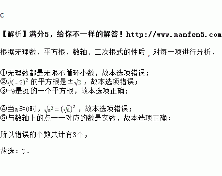 ①无理数都是无限小数;②的平方根是±2;③-9是81的一个平方根;