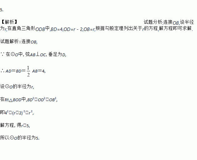 如图,点C在⊙O上,弦AB⊥OC,垂足为D,AB=8,CD=2.求⊙O的半径.