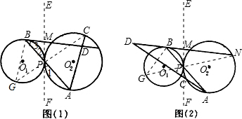 解:(1)过点P作两圆的切线EF,连接CP并延长交⊙O1于点G,连接BG.