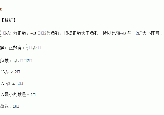 在实数﹣,﹣2,,中,最小的是( )