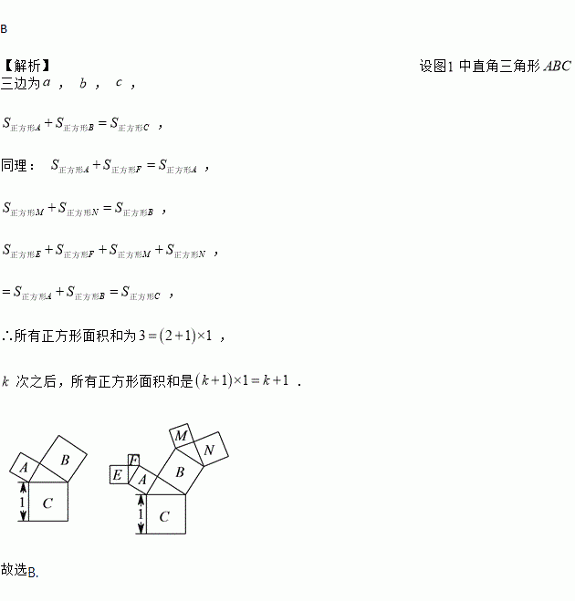 ),且三个正方形所围成的三角形是直角三角形;再经过一次“生长’’后变成了图