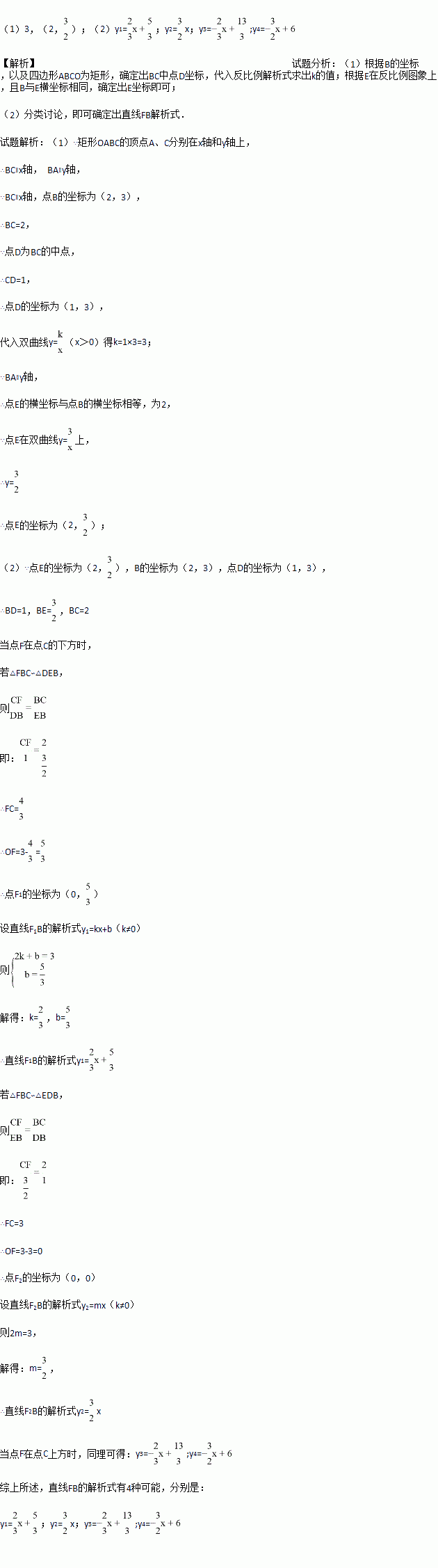 如图,矩形OABC的顶点A、C分别在x轴和y轴上,点B的坐标为(2,3).双曲线y=