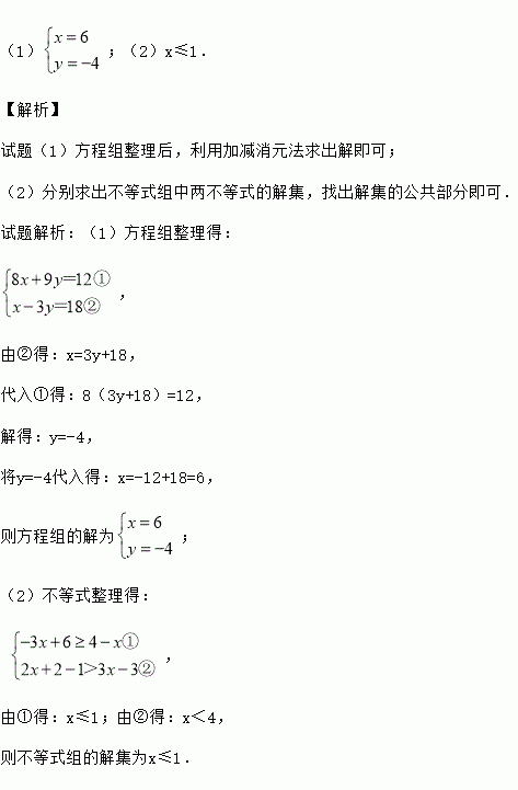 (1)解方程组:;