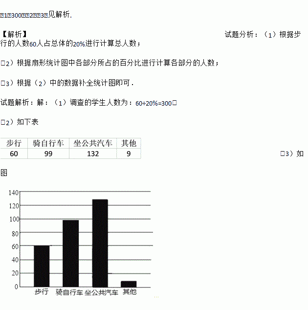 某中学准备搬迁新校舍,在迁入新校舍之前,同学们就该校学生如何到校问题进行了一次调查,并将调查结果制成了表格,条形图和扇形统计图,请你根据图表信息完成下列各题: