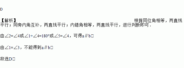 A. ∠2=∠4 B. ∠1+∠4=180° C. ∠5=∠4 D. ∠1=∠3
