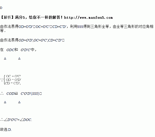 如图,请仔细观察用直尺和圆规作一个角等于已知角的示意图,请你根据所学的三角形全等的有关知识,说明画出的依据是( )![]()