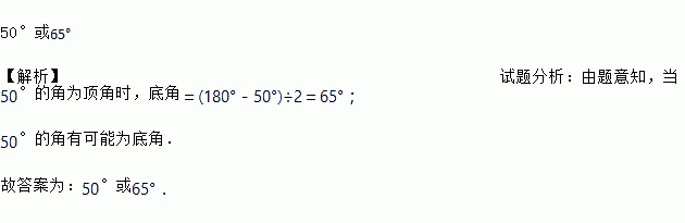 等腰三角形中有一角为,则底角的度数是__________.