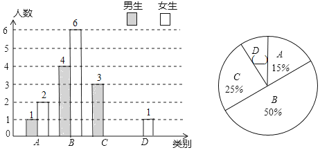 (1)本次调查中,杨老师一共调查了 名学生,其中C类女生有 名,D类男生有 名;