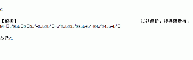 C 【解析】试题解析:根据题意得:M=(a2﹣ab)﹣(5a2+3ab﹣b2)=a2﹣ab﹣5a2﹣3ab+b2=﹣4a2﹣4ab+b2, 故选C.