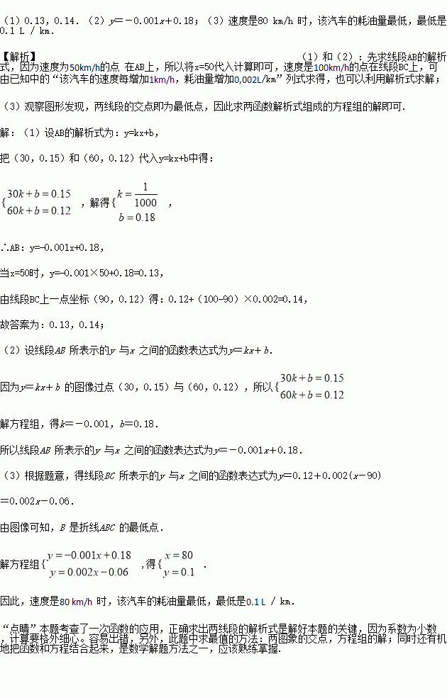 (1) 当速度为50km/h、100km/h时,该汽车的耗油量分别为_____L/km、____L/km.