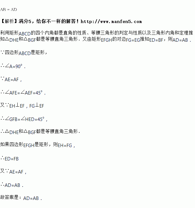 如图,在矩形中,,过点作交于点,过作交于,当、满足________(关系)时,四边形为矩形.