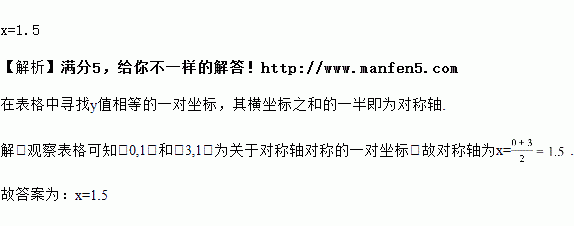 已知二次函数y=ax2+bx+c的x,y的部分对应值如下表: