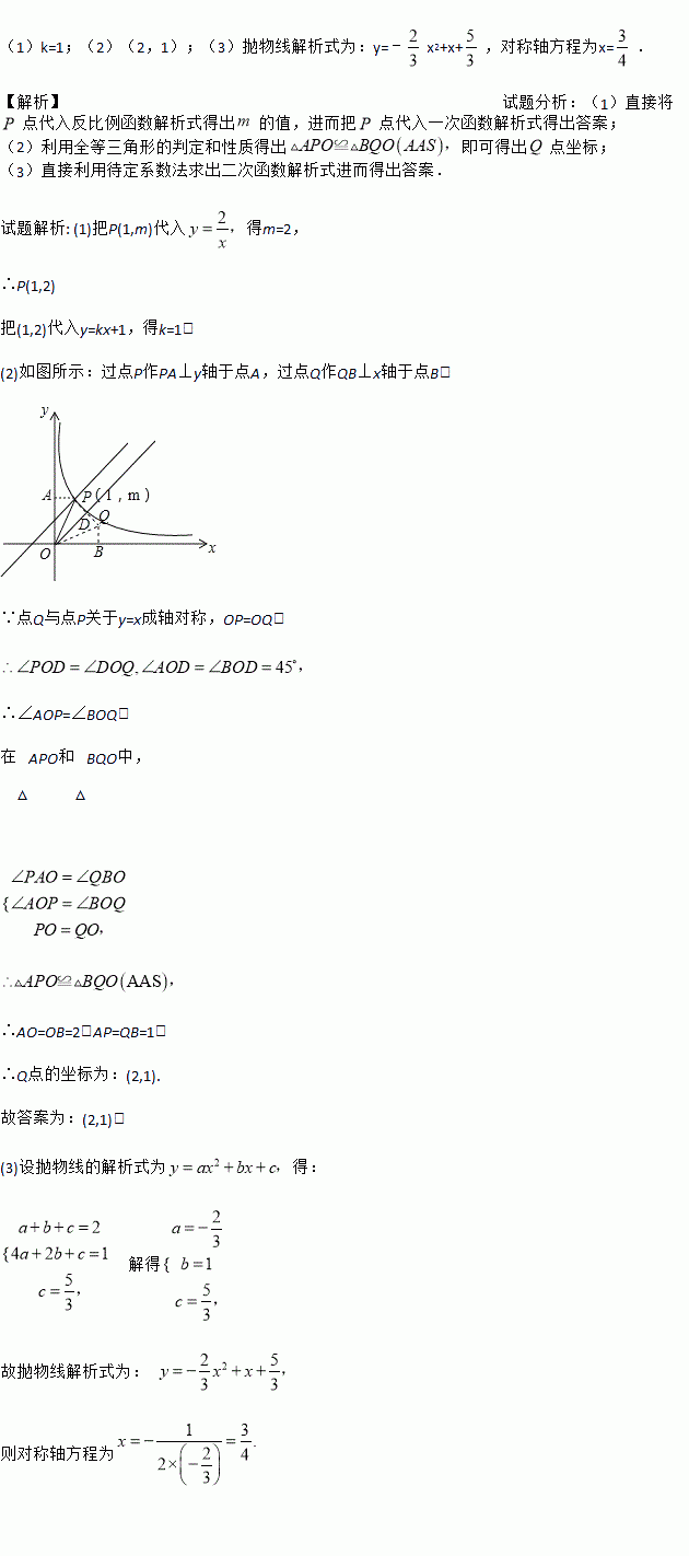 (2)若点Q与点P关于y=x成轴对称,则点Q的坐标为Q( );