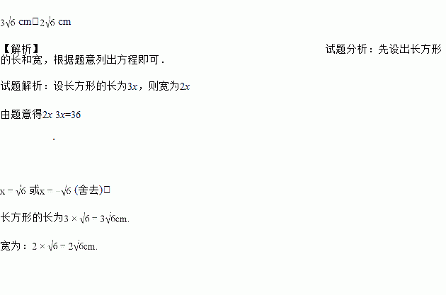 已知长方形的长与宽为比3:2,面积为36cm,求长方形的长与宽.(结果保留根号)