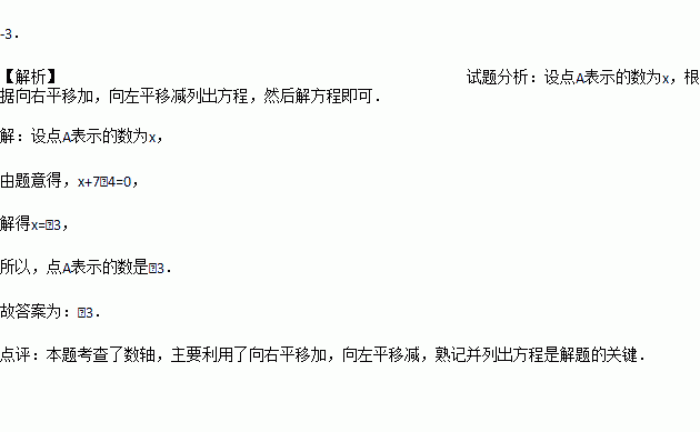 点A表示数轴上的一个点,将点A向右移动7个单位,再向左移动4个单位,终点恰好是原点,则点A表示的数是_____.