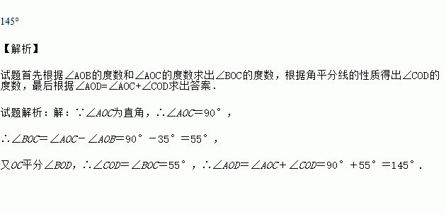 如图,∠AOC为直角,OC是∠BOD的平分线,且∠AOB=35°,求∠AOD的度数.