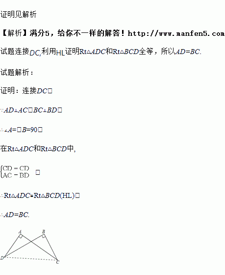 已知:如图,AC=BD,AD⊥AC,BC⊥BD.求证:AD=BC;