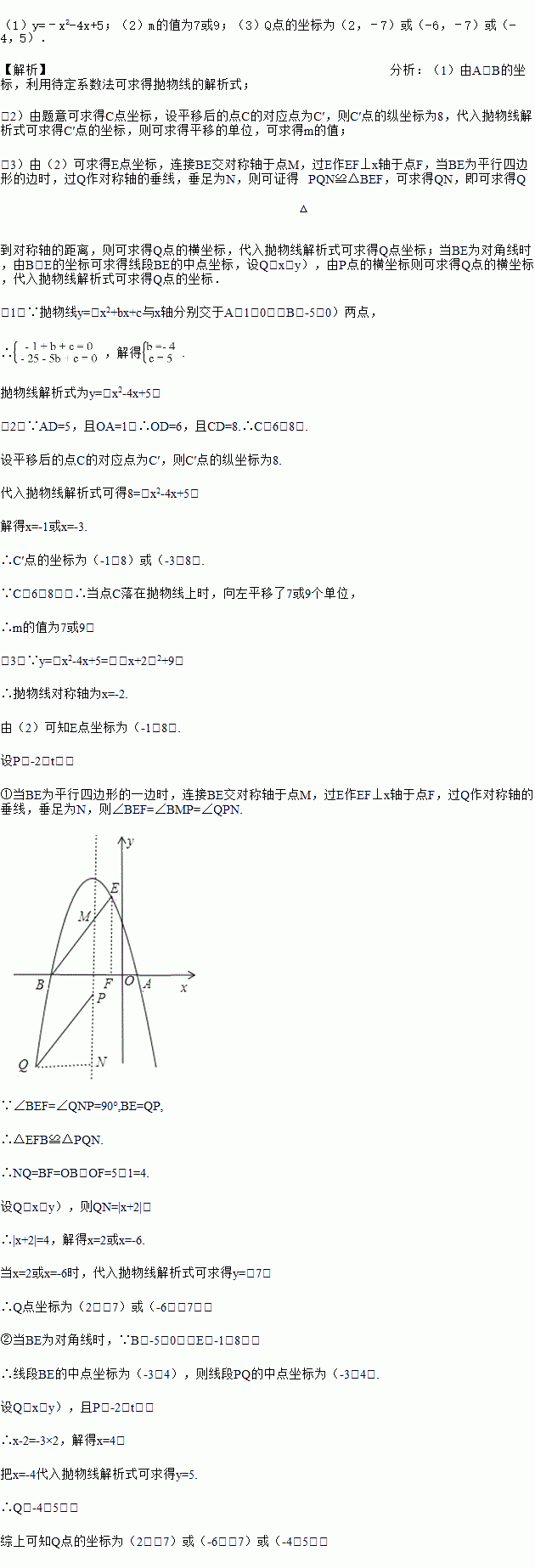 如图,抛物线y=﹣x2+bx+c与x轴分别交于A(1,0),B(-5,0)两点.