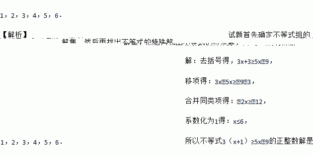 不等式3(x+1)≥5x﹣9的正整数解是 .