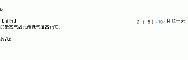 我市某一天的最高气温是2℃,最低气温是-8℃,那么这一天的最高气温比最低气温高( )℃