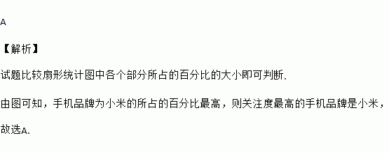 在苹果手机全球热销的今天,国产手机也在悄然崛起。某网站对国产品牌手机的关注度进行了统计,并把关注度绘制成扇形统计图如图所示,关注度最高的手机品牌是( )
