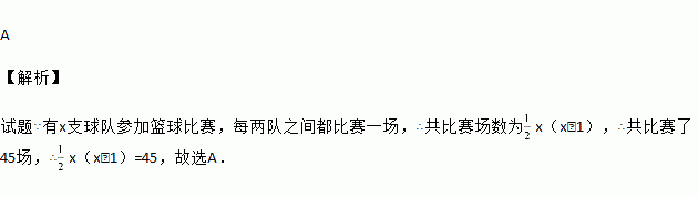 有x支球队参加篮球比赛,共比赛了45场,每两队之间都比赛一场,则下列方程中符合题意的是( )