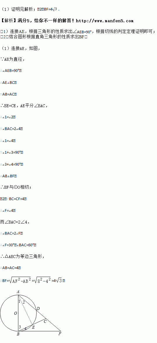 (1)求证:BF与⊙O相切.