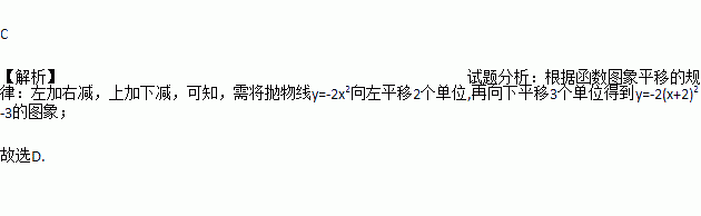 要得到y=﹣2(x+2)2﹣3的图象,需将抛物线y=﹣2x2作如下平移( )