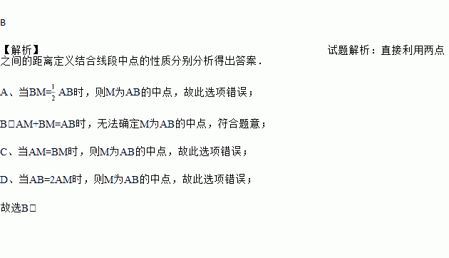 A. BM=AB B. AM+BM=AB C. AM=BM D. AB=2AM