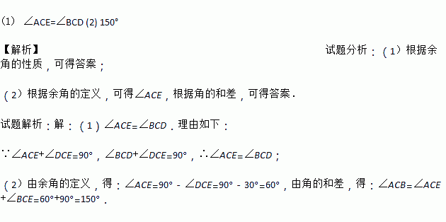 (2)若∠DCE=30°,求∠ACB的度数.