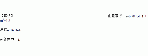 若a、b互为相反数,c、d互为倒数,∣m∣=2, +m2-3cd=___________