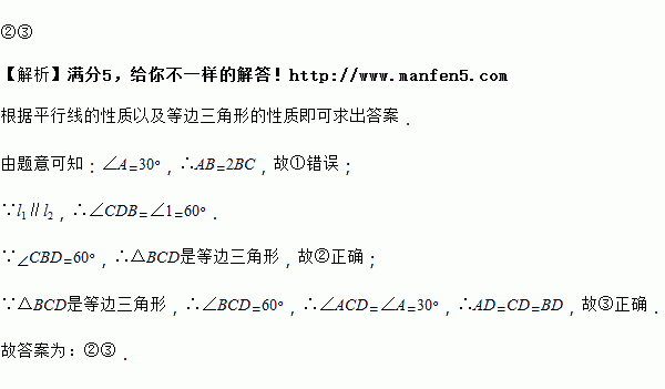 ①AC=2BC ②△BCD为正三角形 ③AD=BD