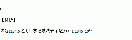 据初步统计,2015年北仑区实现地区生产总值(GDP)约为1134.6亿元.其中1134.6亿元用科学记数法表示为( )