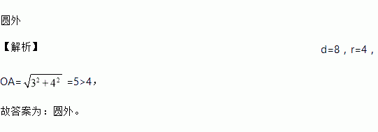 已知⊙A的直径是8,点A的坐标是(3,4),那么坐标原点O在⊙A的__________(填“圆内”、“圆上”或“圆外”)
