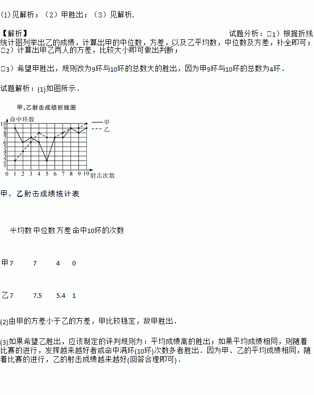 ΪÁ˴Ӽס¢ÒÒÁ½ÃûÑ¡ÊÖÖÐÑ¡°ÎÒ»È˲μÓÉä»÷±ÈÈü£¬ÏÖ¶ÔËûÃǽøÐÐÒ»´Î²âÑ飬Á½¸öÈËÔÚÏàͬÌõ¼þϸ÷Éä°Ð10´Î£¬ÎªÁ˱ȽÏÁ½È˵ijɼ¨£¬ÖÆ×÷ÁËÈçÏÂͳ¼ÆÍ¼±í£º