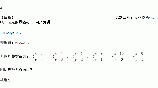 将一张面值100元的人民币,兑换成10元或20元的零钱,兑换方案有( )