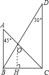 分析:根据题意得HO,BH的长,进而得出BC的长以及BD的长,即可得出DO的长.