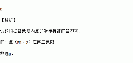 在平面直角坐标系中,点(﹣1,2)在( )