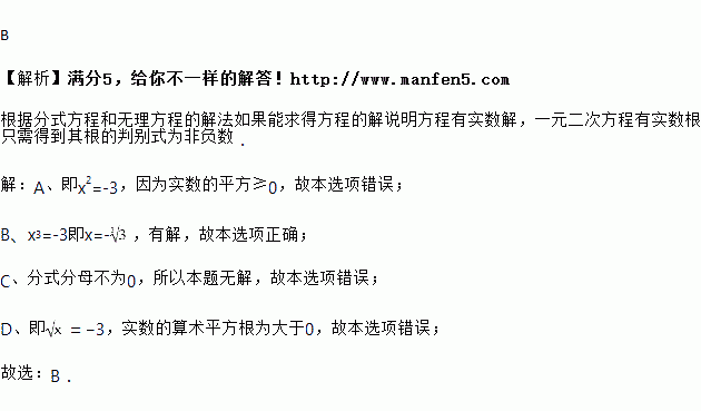 下列方程中,有实数根的方程是( )