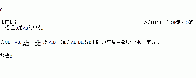 如图,△ABC内接于☉O,D为线段AB的中点,延长OD交☉O于点E,连接AE,BE,在以下判断中,不正确的是( )