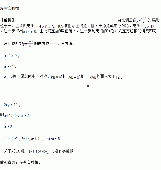 的图象如图所示,A,P为该图象上的点,且关于原点成中心对称.在△PAB中,PB∥y轴,AB∥x轴,PB与AB相交于点B.若△PAB的面积大于12,则关于x的方程(a-1)x2-x+