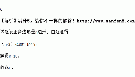 正多边形的一个内角等于144°,则该多边形是正( )边形.