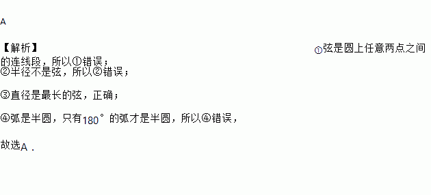 ①弦是圆上任意两点之间的部分;②半径是弦;③直径是最长的弦;④弧是半圆,半圆是弧.