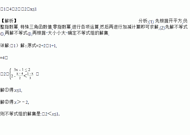 (1)计算:+()﹣1﹣2cos60°+(2﹣π)0.