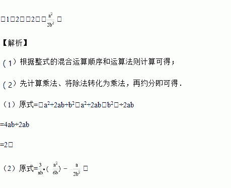 计算:(1)[(a+b)2﹣(a﹣b)2]÷2ab;