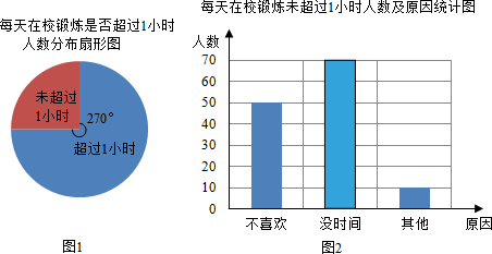分析 (1)将每天在校锻炼时间超过1小时所对应圆心角占周角的比例乘以总人数可得;
