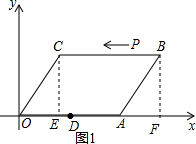 分析 由四边形OABC是平行四边形,得到OA=BC,OA∥BC,于是得到OA=10,OE=AF=2,得到OD=AD=$\frac{1}{2}$OA=5,