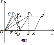 (2)如图2,分三种情况①当PD=OD=5时,过P作PE⊥OA于E,则PE=4,得到DE=3,求出P1(8,4),②当PD=OP时,过P作PF⊥OA于F,则PF=4,OF=$\frac{5}{2}$,得到P3($\frac{5}{2}$,4);③当PO=OD=5时,过P作PG⊥OA于G,则PG=4,得到P2(3.4).