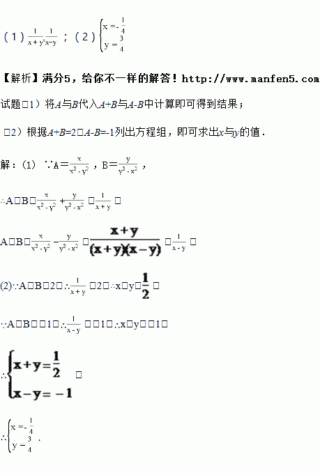 (2)若已知A+B=2,A-B=-1,求x、y的值.