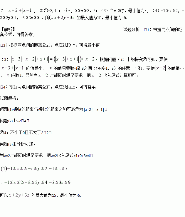 问题(1):点A、B、C在数轴上分别表示有理数x、﹣2、1,那么A到B的距离与A到C的距离之和可表示为 (用含绝对值的式子表示).